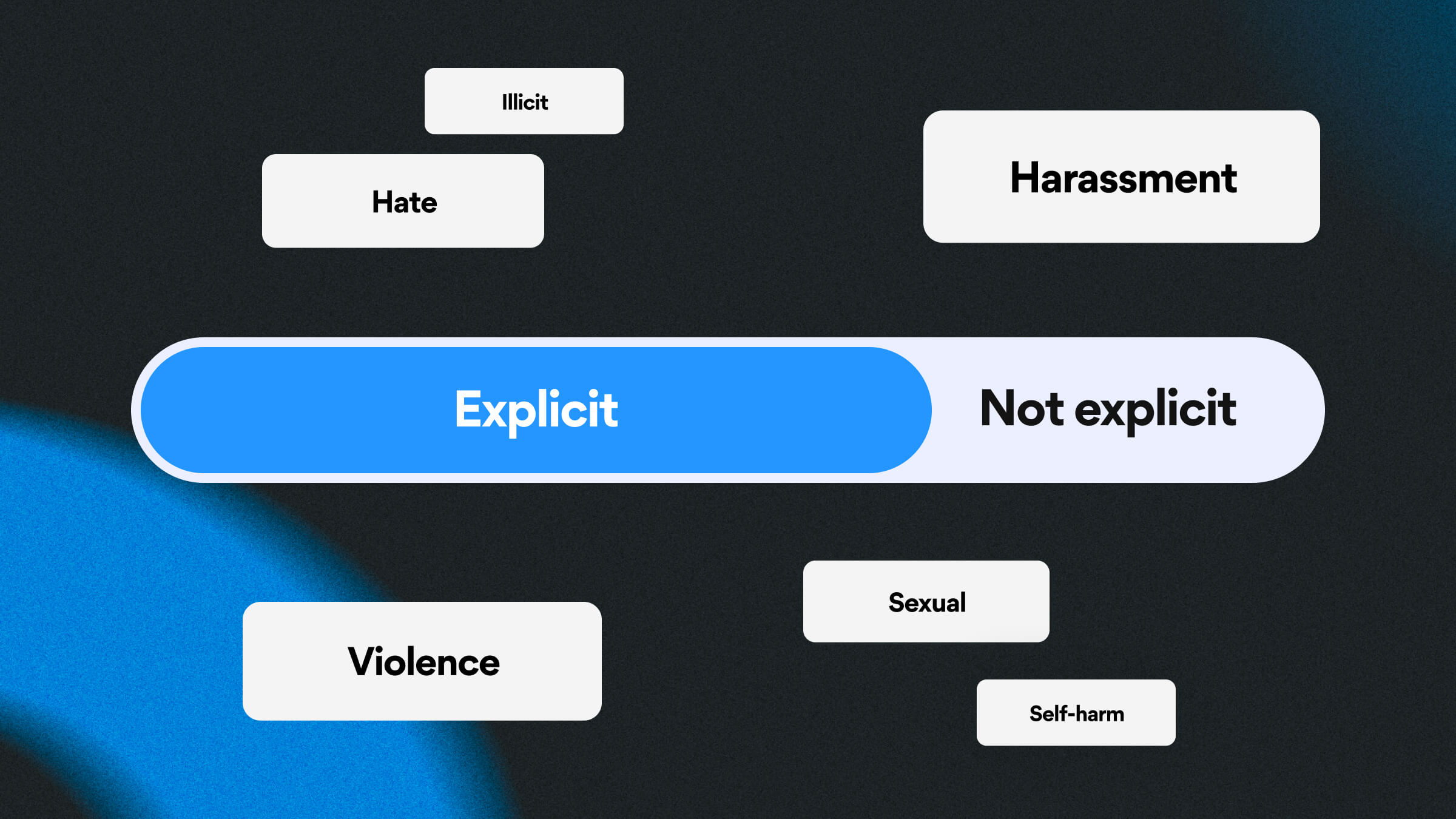 A PG-rating, a detailed breakdown of scores across moderation categories such as harassment, self-harm, violence, and explicit content, and a summary of flagged keywords or phrases with contextual insights
